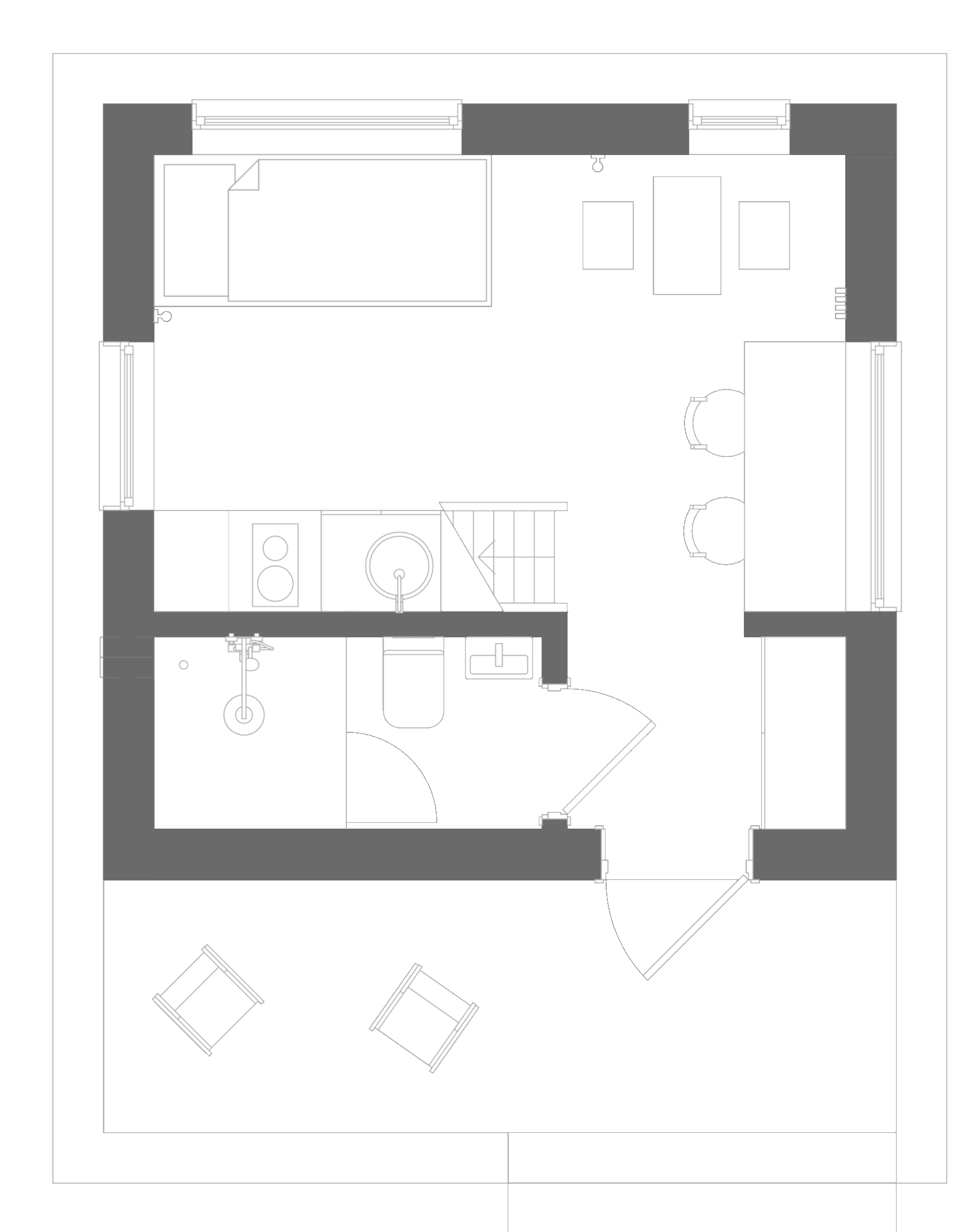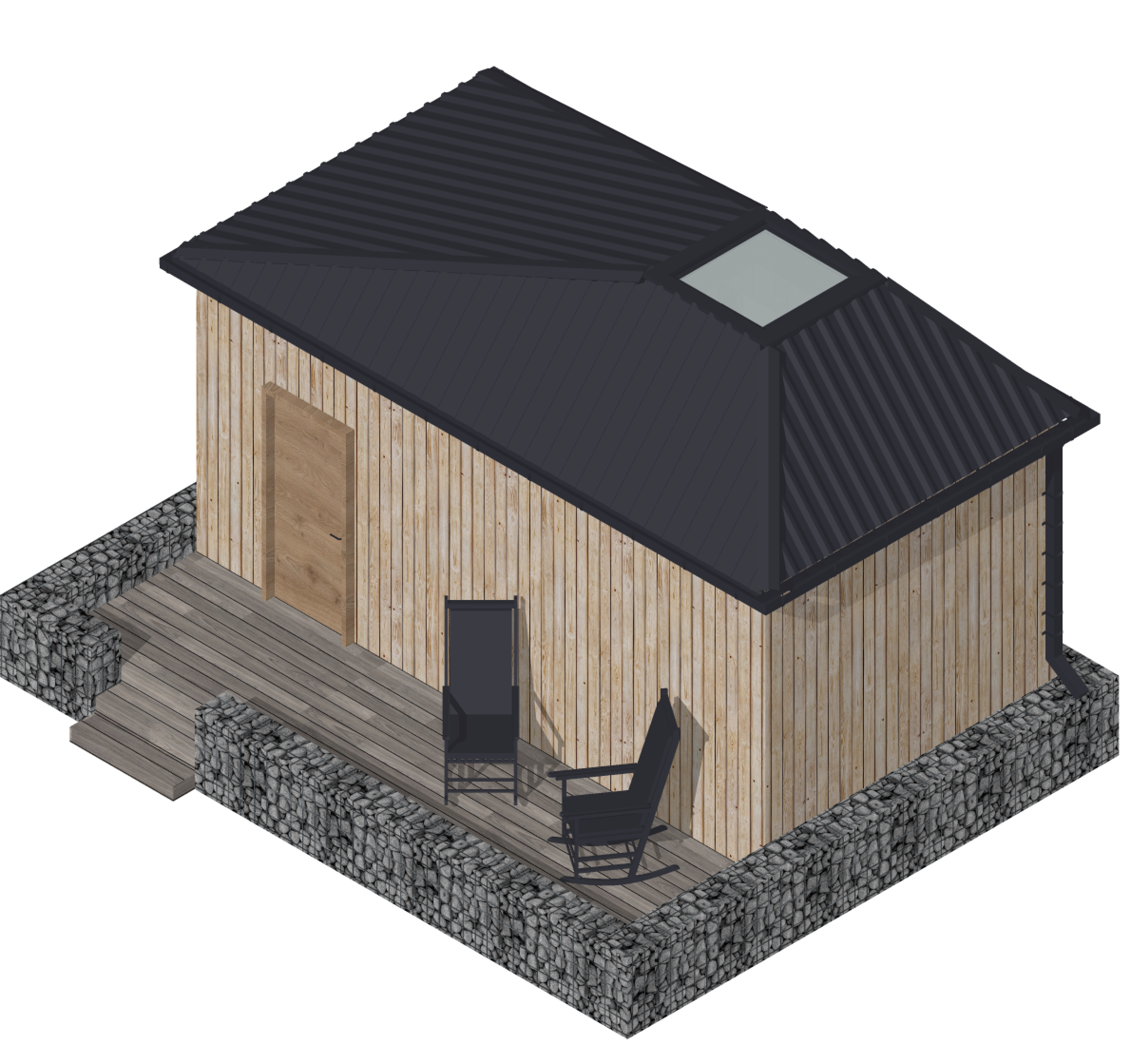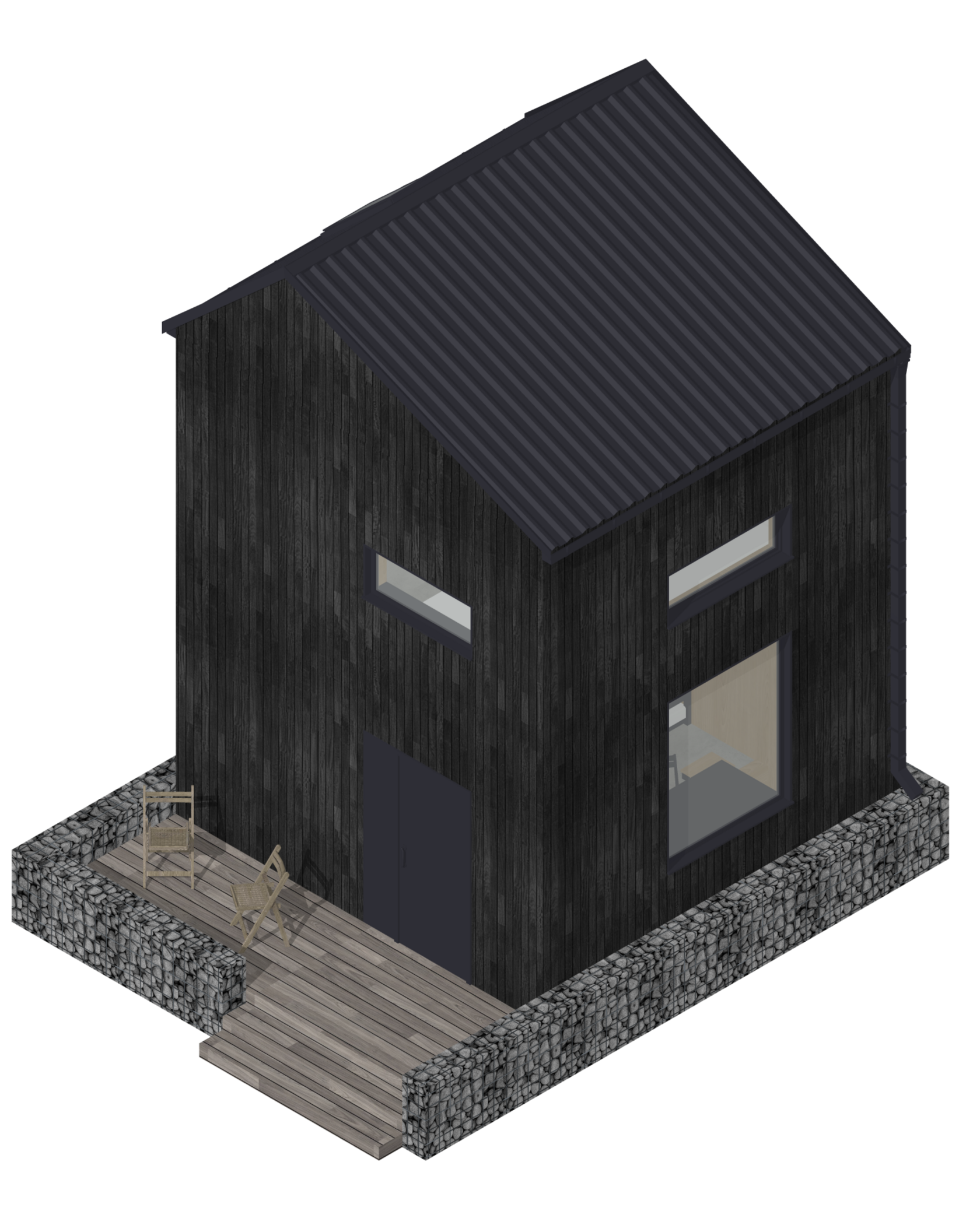 Компактный двухуровневый дом для ретрита, рассчитанный на пребывание от 1 до 4 человек, представляет собой идеальное место для уединения и восстановления сил.