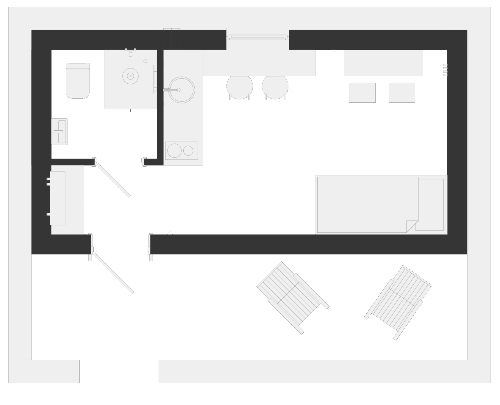 Внешнее пространство включает в себя небольшую террасу, где гости могут расслабиться на свежем воздухе.