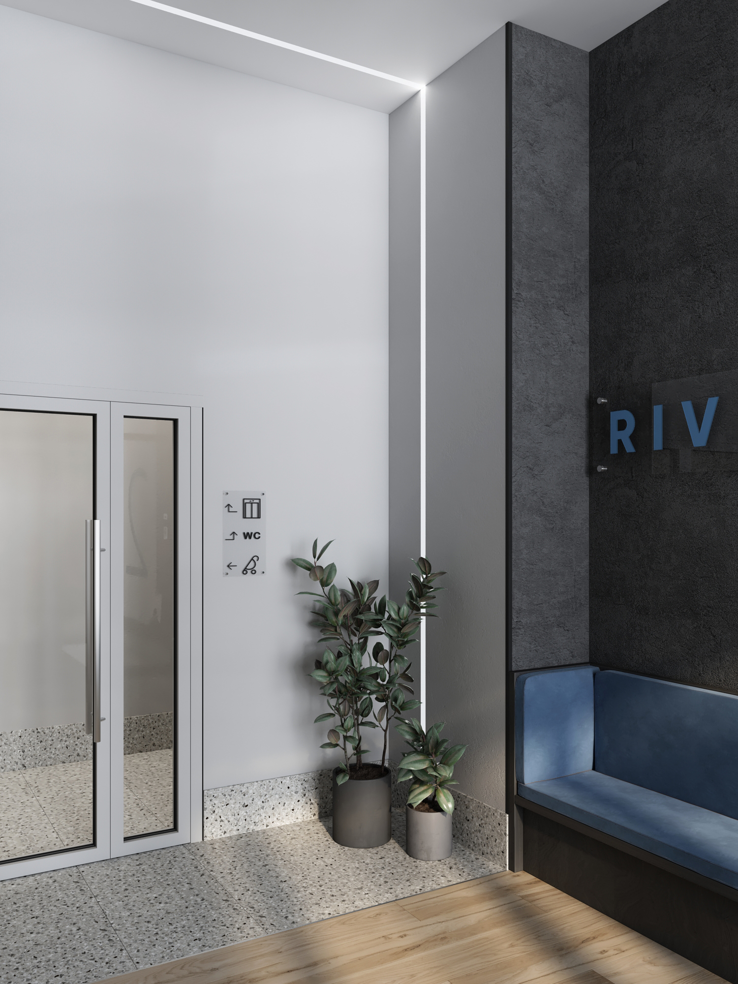 С целью продолжения общей концепции комфортности жилого комплекса «Ривер Парк», основополагающими принципами в дизайне мест общего пользования являются: функциональность и ощущение комфорта для жителей, гостей.